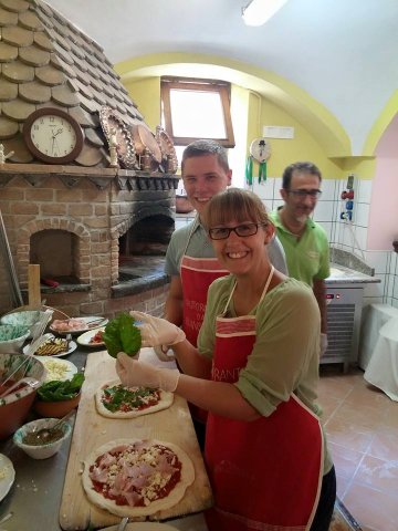 PIZZA MAKING SHOW TOUR. Pizza at a local restaurant in the historic center of Schiazzano, guests will receive an explanation on the making of the typical Neapolitan pizza and will try to make one out of the dough balls kneaded in the morning. Then wine, dessert and coffee.